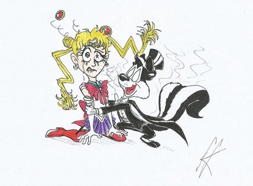 Pepe le pew looney tunes warner bros anyone familiar with pepe le pew from the looney tunes cartoon menagerie will get the same image in their head. A male skunk merrily bouncing towards a terrified female black cat who had the misfortune of somehow getting a white stripe painted along her back.