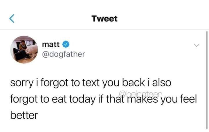 You Didn T Text Me Back At I Know Omg Sorry Totally Forgot To