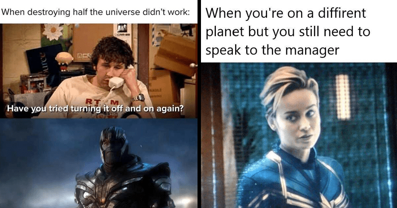 Thanos has a chin that could be seen from space. Here s one meme which makes us wonder if tony stark hasn t excluded the widow in one important way. Contest is still active and the game will temporarily be shut down in a week. Endgame finally coming home i have put together a collection of endgame memes that will make you laugh and maybe cry avengers. Thanos skipped leg day. The russo brothers have officially lifted the avengers images spoiler ban so we feel like we can have a little bit more fun with the memes we re posting. Just you wait peggy.