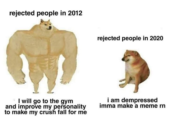 Strong doge vs weak doge meme. Caption a meme or image make a gif make a chart make a demotivational flip through images. Doge strong in ancient times vs doge weak in modern days. I am a bot. Declinist art such as the strong doge weak doge meme can seem superficially compelling but is often rooted in a vision of the past rose colored by a kind of survivorship bias in which only the most inspiring or profound parts of the past live on in stories. Crying cheems caption this meme all meme templates template id. Typically memes using the original artwork appear as a comparison format which features two object labeling designations on each character similar to virgin vs. Typically strong doge is labeled as someone from the past and cheems is labeled as someone from the present.