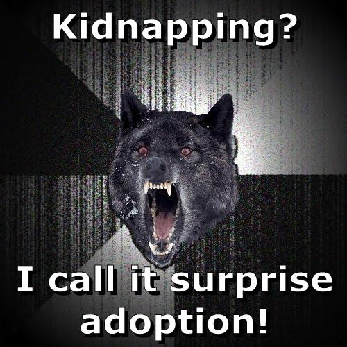 Surprise adoption kidnapping meme. You might also like jimmerthatisall. I prefer the term surprise adoption meme kidnapping term surprise kidnap adoption surprise adoption the prefer i prefer. We see that you re using an ad blocker. The textual content of this image is harassing me or someone i know the visual content of this image is harassing me or someone i know both the textual and visual content are harassing me or someone i know. Add an image add a comment. Found on 2019 01 18 00 28 36 by me me scroll for kidnapping memes. I call it surprise adoption insanity wolf.