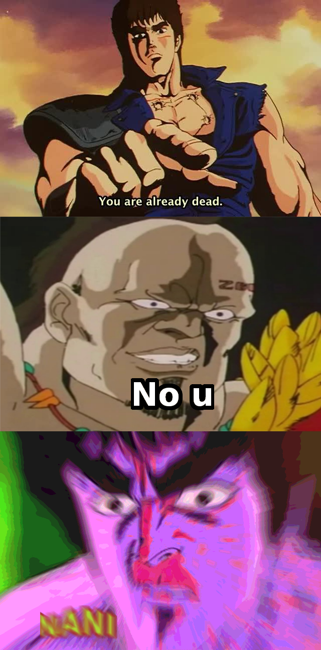 937 points 62 comments you re already dead 9gag has the best funny pics gifs videos gaming anime manga movie tv cosplay sport food memes cute fail wtf photos on the internet. Blank poker faces expressionless looks and bored out of your brain appearances these are all common features of the dead inside meme. You can pm and or email me. This is my sound board for streaming. Learn japanese with anime you re already dead duration. In this post we explain the meaning and origins of the popular omae wa mou shindeiru you are already dead meme and source 25 of the best meme examples from social media. Full uncut aang vs.